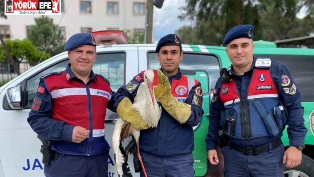 Aydın’ın Çine ilçesinde yaralı halde bulunan Leylek jandarma ekipleri tarafından koruma altına alınarak, tedavisi için doğa koruma ekiplerine teslim edildi.