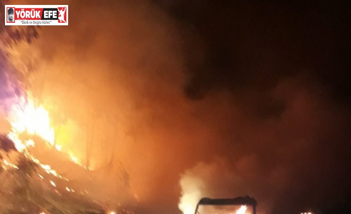 Aydın-İzmir otobanında seyir halindeki balık yüklü kamyonet cayır cayır yanarken, ormanlık alana sıçrayan alevler büyümeden söndürüldü.