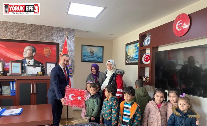 İlçe Emniyet Müdürü Şafak Yıldırım’ı makamında ziyaret eden minik öğrenciler, hazırladıkları el emeği ürünleri takdim etti. Öğrencileri makamında ağırlayan İlçe Emniyet Müdürü Yıldırım, öğrencilerin polislik mesleği hakkında merak ettiği soruları cevapladı. Sonrasında öğrencilere emniyet müdürlüğü binası gezdirildi. Öğrencilere personelin kullandığı araçların tanıtımı da yapıldı. Yapılan ikram ve sohbetin ardından öğrencilerle birlikte hatıra fotoğrafı çekilmesi ile program sona erdi.
