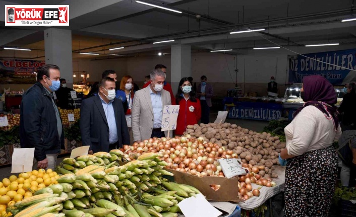 Kuşadası Belediye Başkan Yardımcıları Oğuzhan Turan, Seyfi Seyhan Suvari ile Yusuf Atak Kapalı Pazar Yeri esnafını ziyaret etti. Güvercin Masa gezici ekibinin de eşlik ettiği ziyarette pazar yerinde incelemelerde bulunan başkan yardımcıları, esnaf ile sohbet ederek sorunlarını dinledi.