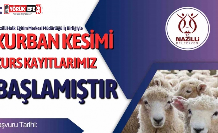 Her bayram döneminde yaşanan kazaların önüne geçmek ve vatandaşların kurban kesim işlemlerini daha güvenli şekilde gerçekleştirmelerini sağlamak amacıyla açılan kurs için kayıtlar başladı. Eğitime katılmak isteyen vatandaşlar, 18 Nisan Cuma gününe kadar Nazilli Belediyesi İnsan Kaynakları ve Eğitim Müdürlüğü’ne şahsen başvurarak kayıt yaptırabilecek. Bayram sürecinde hem bireysel hem de toplumsal faydanın sağlanması planlanan kursun sonunda katılımcılara sertifika verilecek.