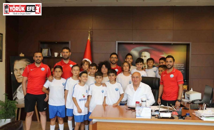 Söke Belediyespor’un U-12 takımı grup şampiyonluğu sevincini paylaşmak üzere Söke Belediye Başkanı Levent Tuncel’i makamında ziyaret etti. Antrenörler Ahmet Arat, İsmail Arat, Yağız Pullukçu ve Selçuk Maltepe’nin de bulunduğu ziyarette Başkan Tuncel şampiyon takımı ve teknik heyetini kutladı, başarılarını devamını diledi.